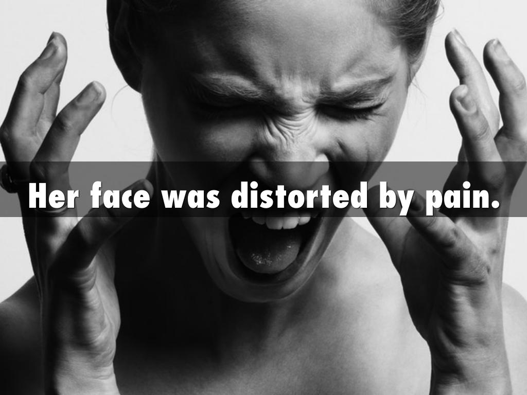 Her face was distorted by pain.