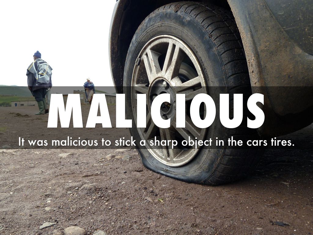 It was malicious to stick a sharp object in the cars tires.