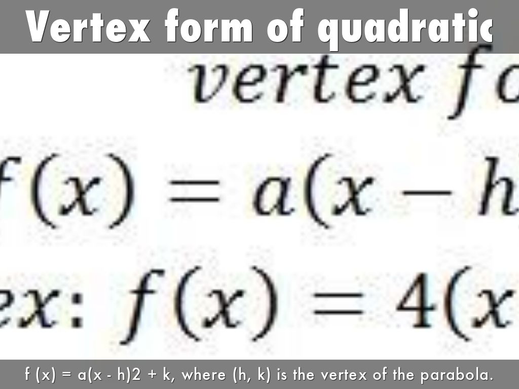 f (x) = a(x - h)2 + k, where (h, k) is the vertex of the parabola.