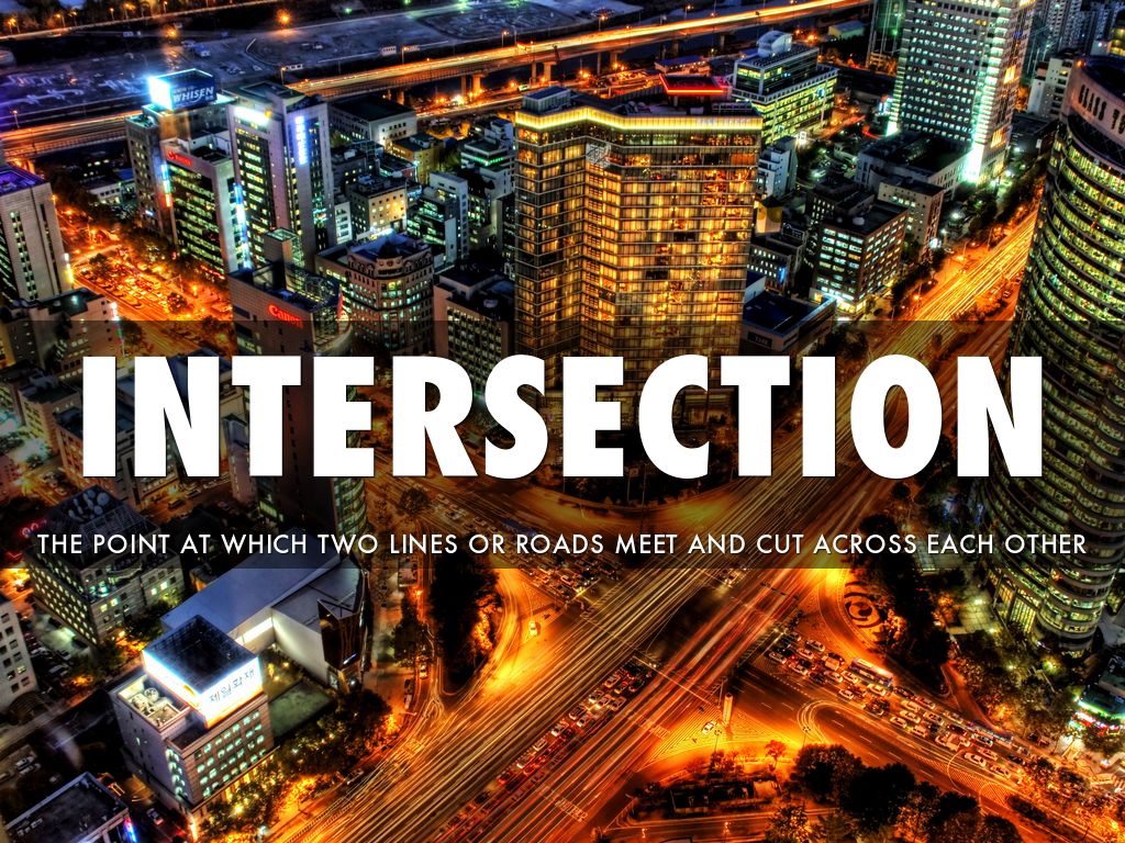 THE POINT AT WHICH TWO LINES OR ROADS MEET AND CUT ACROSS EACH OTHER