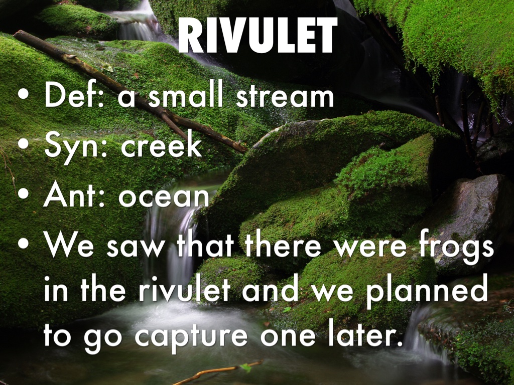 • We saw that there were frogs in the rivulet and we planned to go capture one later.