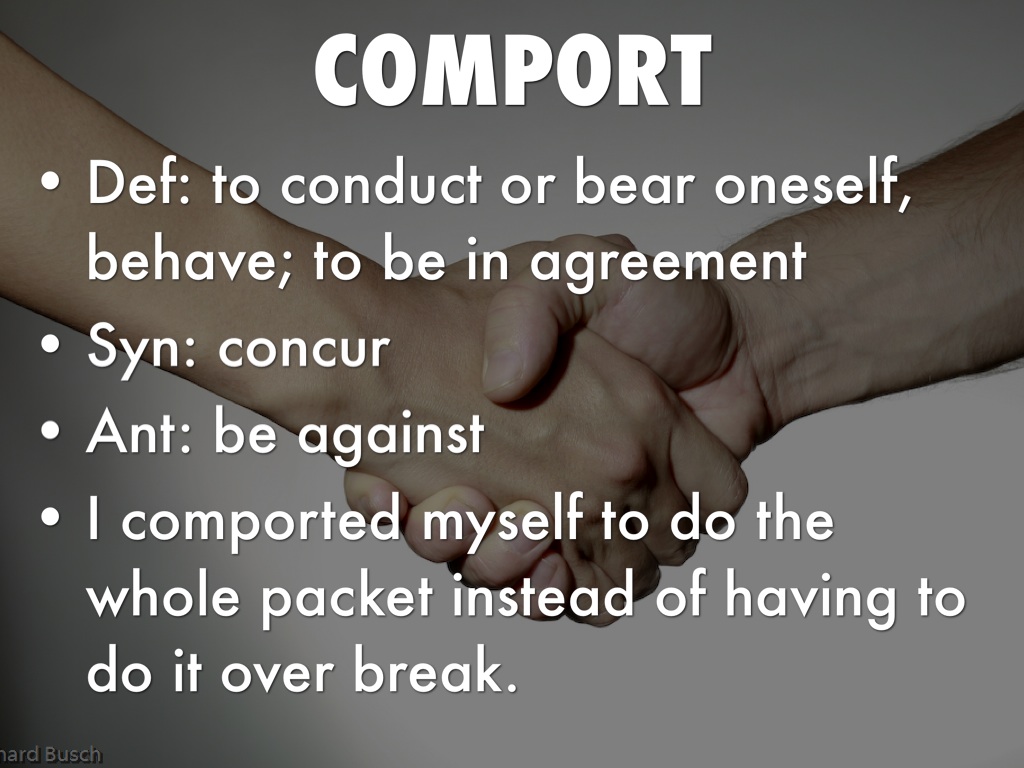 • Def: to conduct or bear oneself, behave; to be in agreement