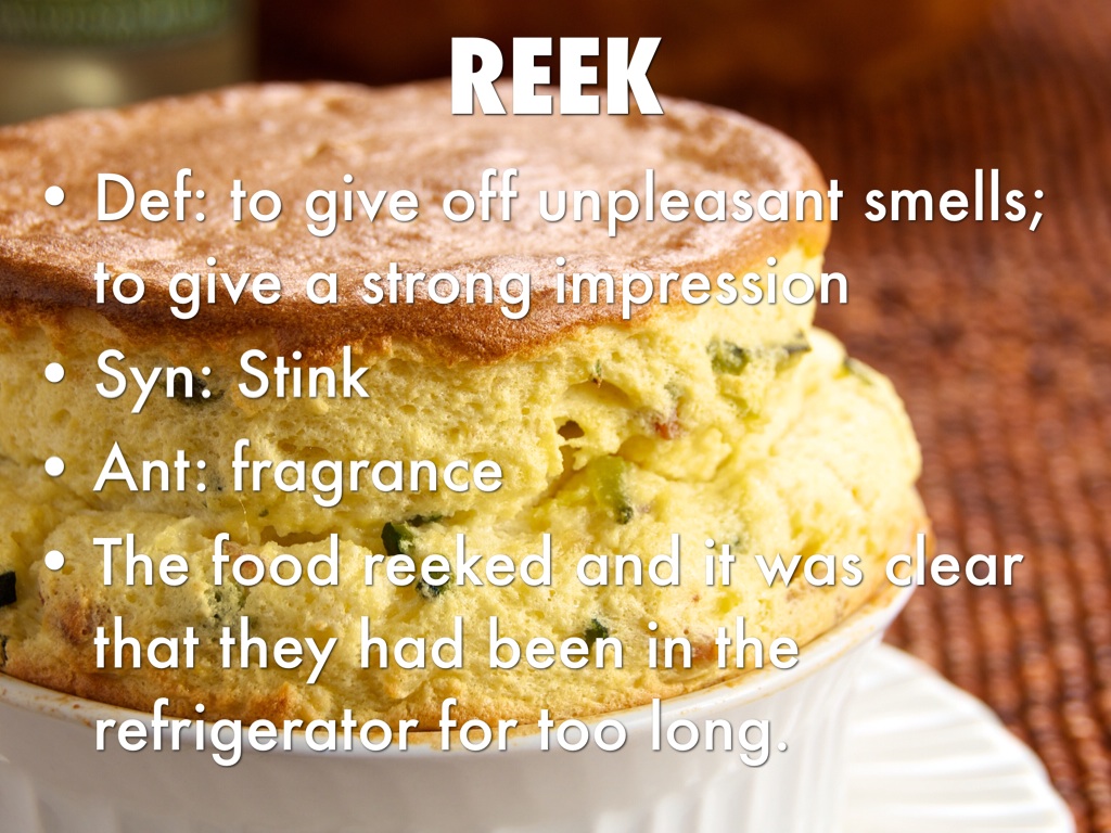 • The food reeked and it was clear that they had been in the refrigerator for too long.