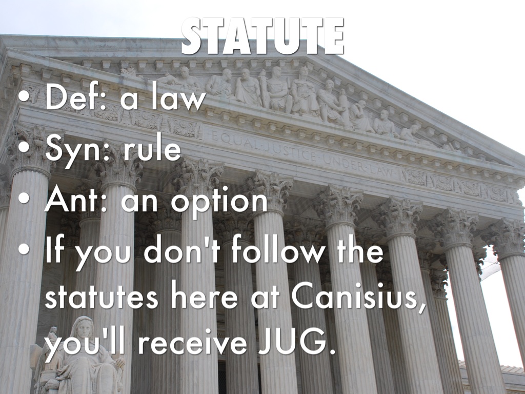 • If you don't follow the statutes here at Canisius, you'll receive JUG.