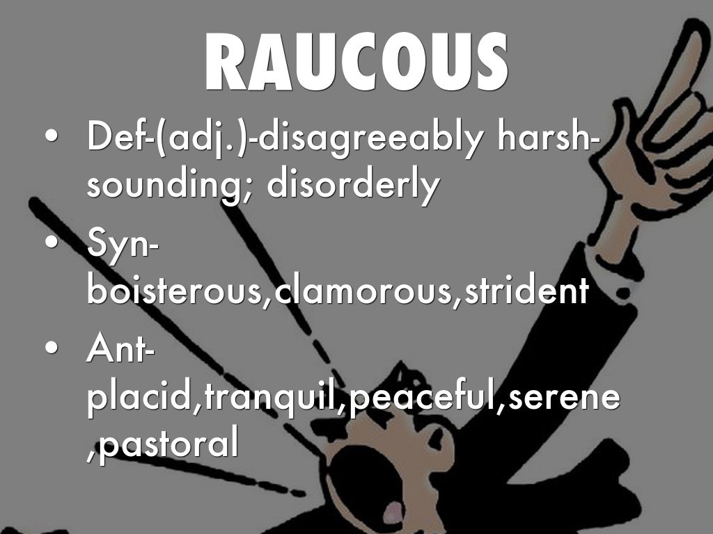 Def-(adj.)-disagreeably harsh-sounding; disorderly