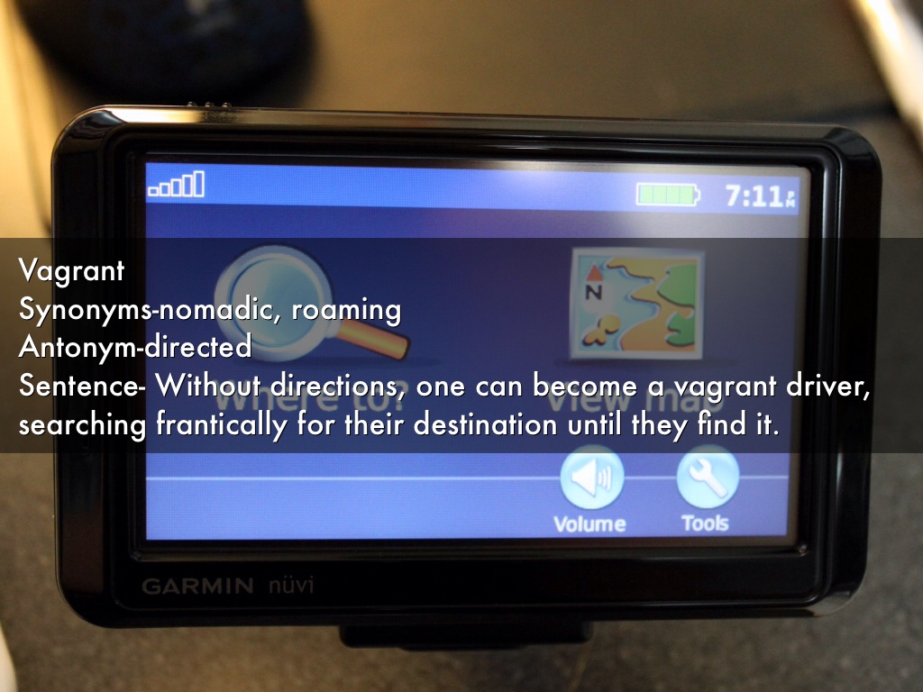 Vagrant Synonyms-nomadic, roaming Antonym-directed Sentence- Without directions, one can become a vagrant driver, searching frantically for their destination until they find it.