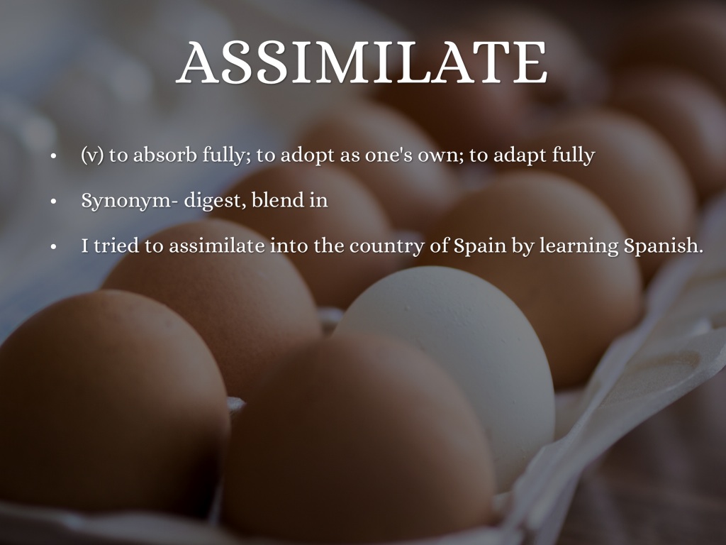(v) to absorb fully; to adopt as one's own; to adapt fully