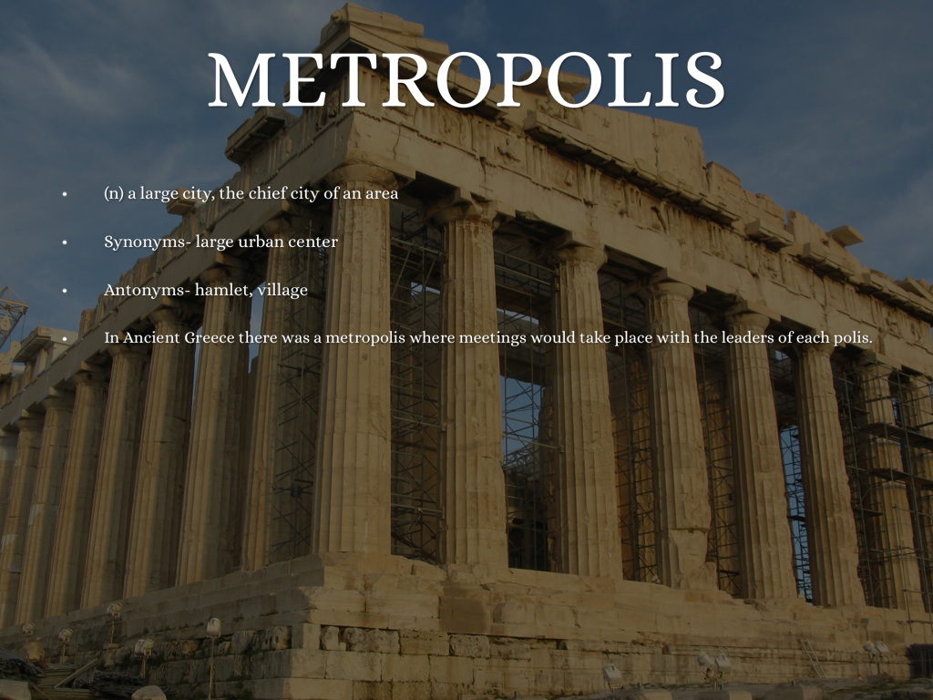 In Ancient Greece there was a metropolis where meetings would take place with the leaders of each polis.
