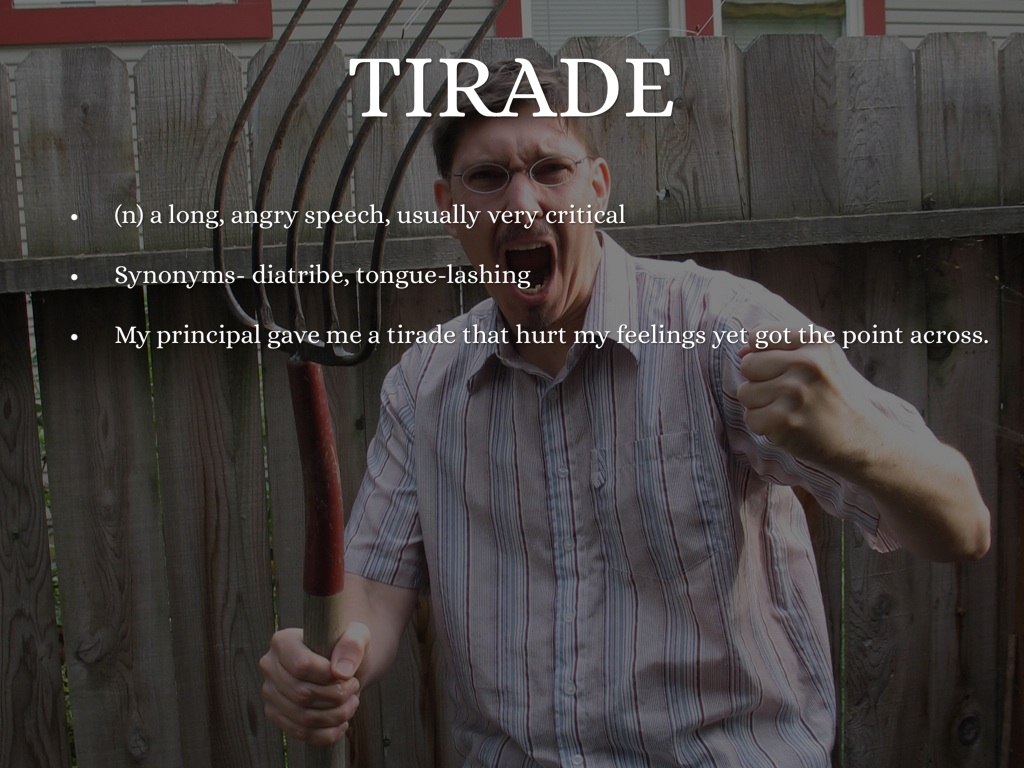 My principal gave me a tirade that hurt my feelings yet got the point across.