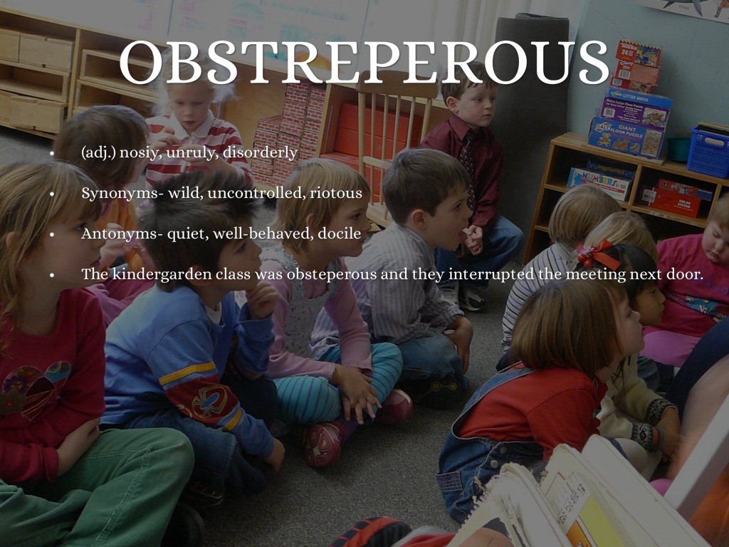 The kindergarden class was obsteperous and they interrupted the meeting next door.