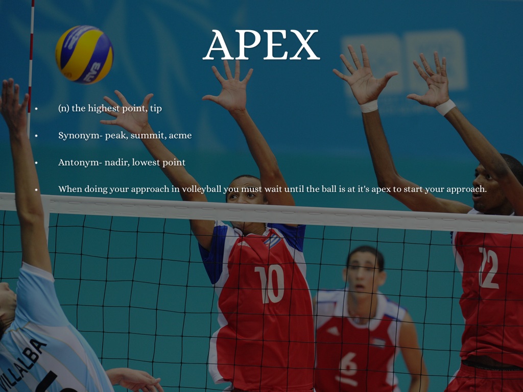 When doing your approach in volleyball you must wait until the ball is at it's apex to start your approach.