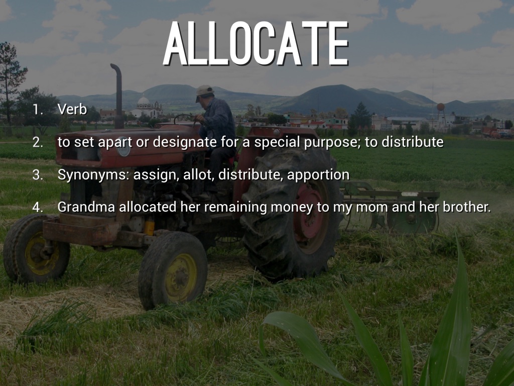 Synonyms: assign, allot, distribute, apportion