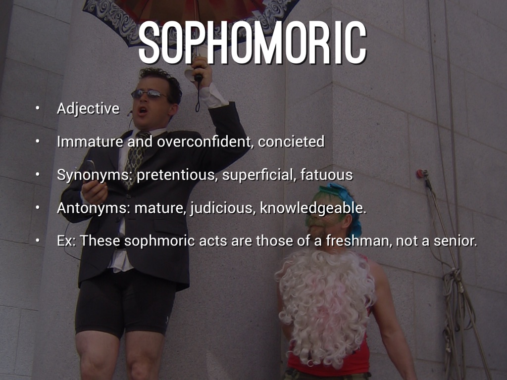 Ex: These sophmoric acts are those of a freshman, not a senior.