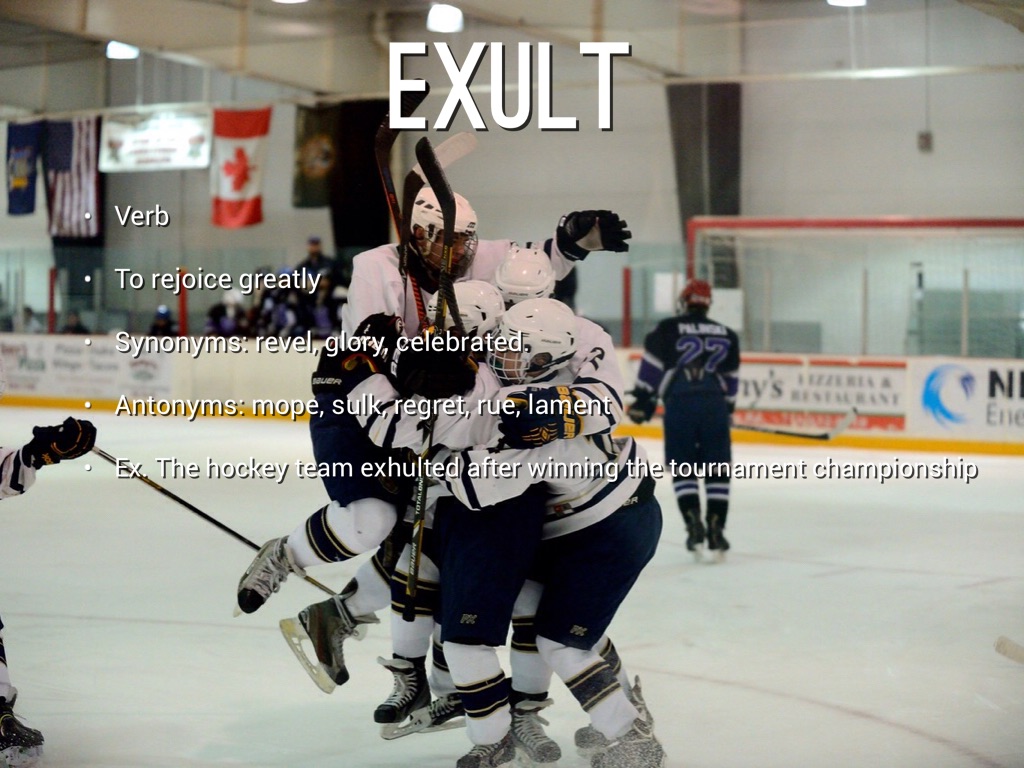 Ex. The hockey team exhulted after winning the tournament championship