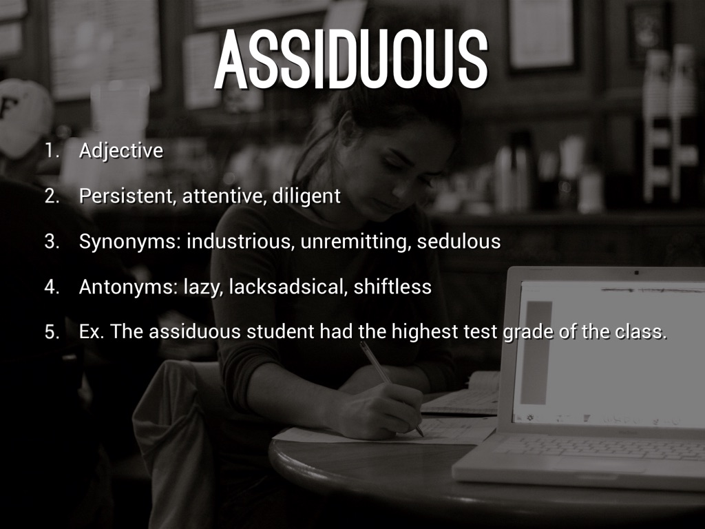 Ex. The assiduous student had the highest test grade of the class.