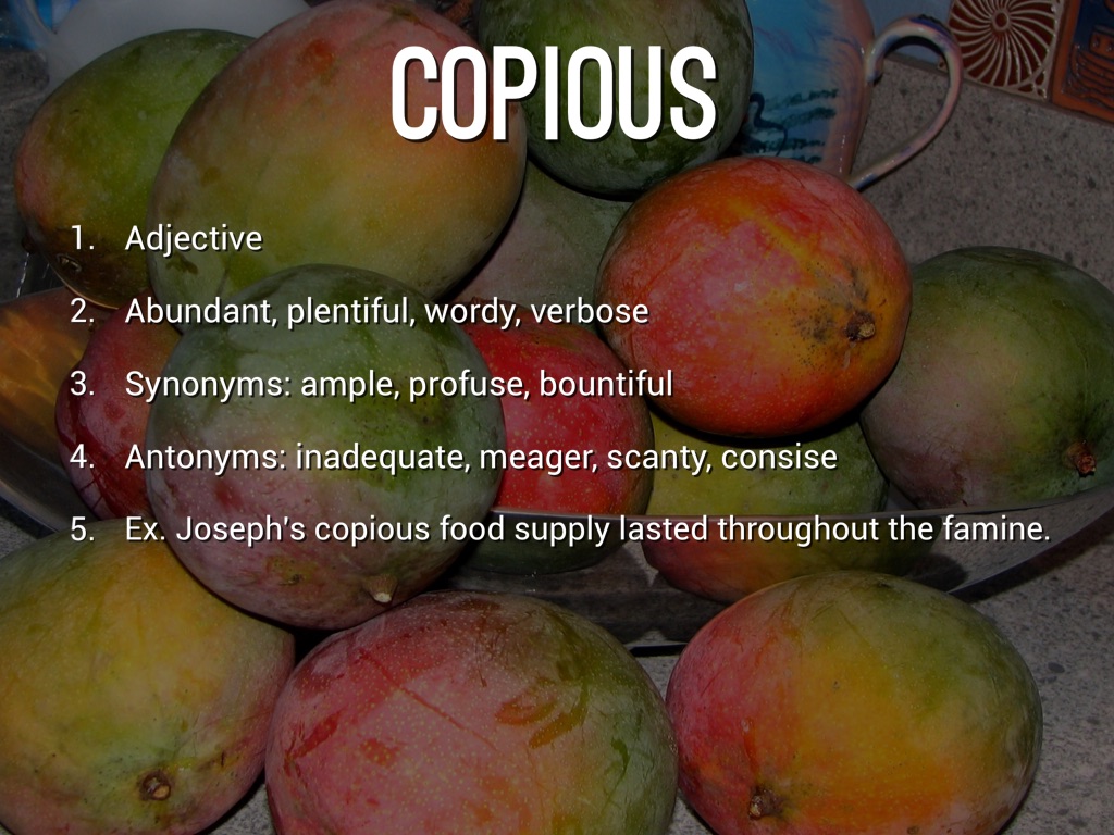 Abundant, plentiful, wordy, verbose