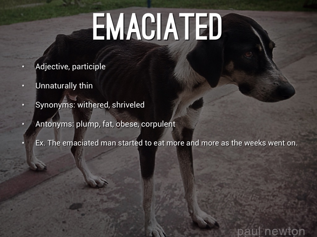 Ex. The emaciated man started to eat more and more as the weeks went on.