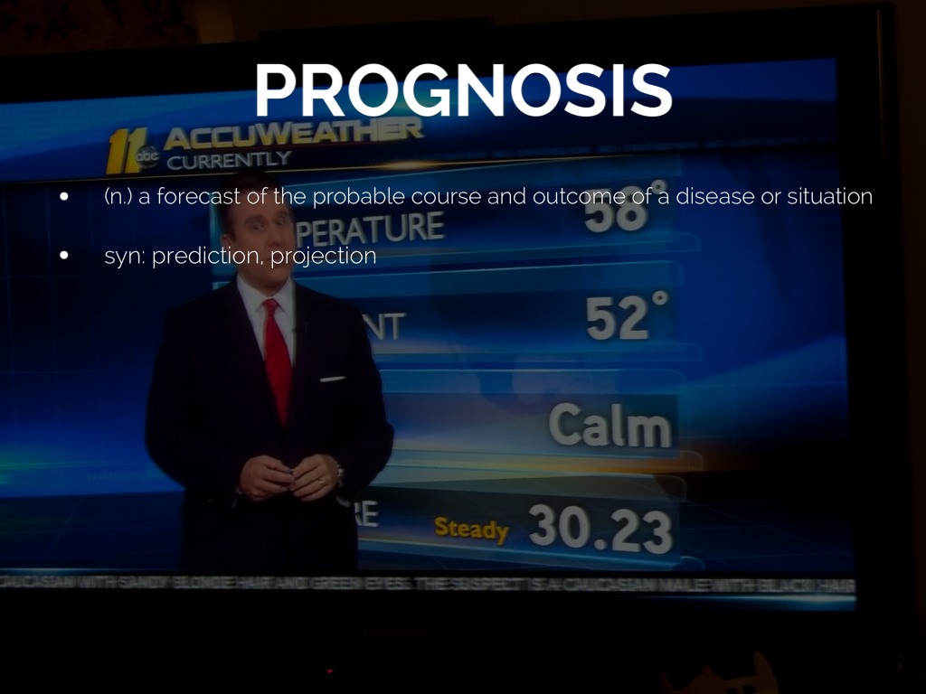 (n.) a forecast of the probable course and outcome of a disease or situation