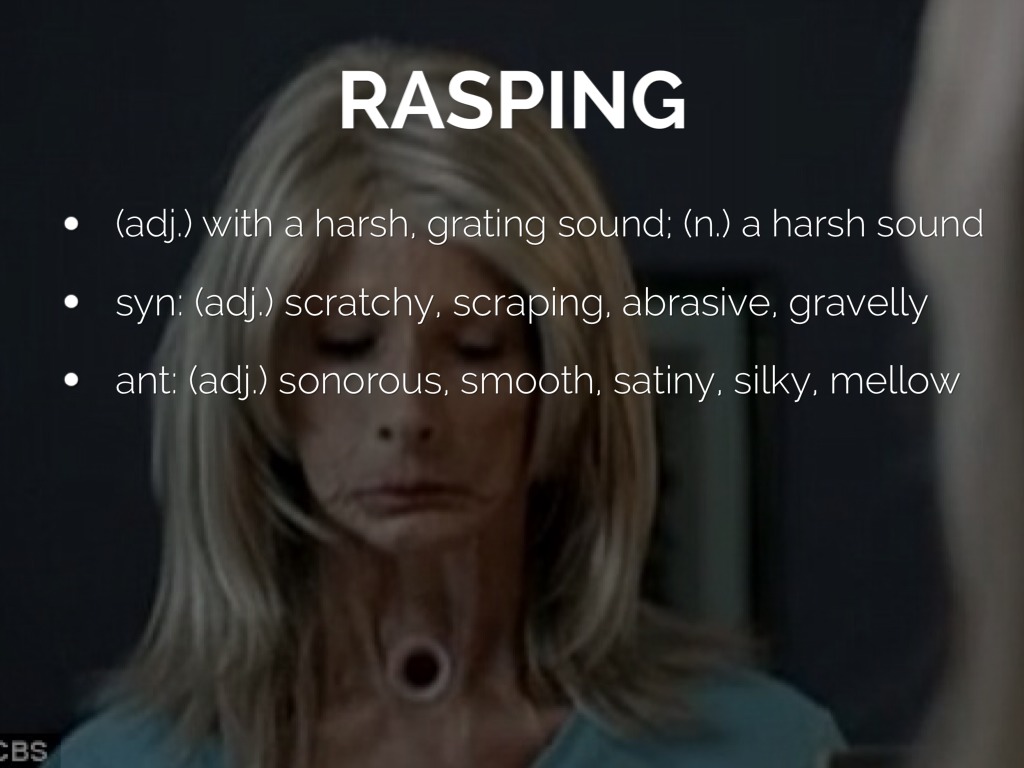 syn: (adj.) scratchy, scraping, abrasive, gravelly