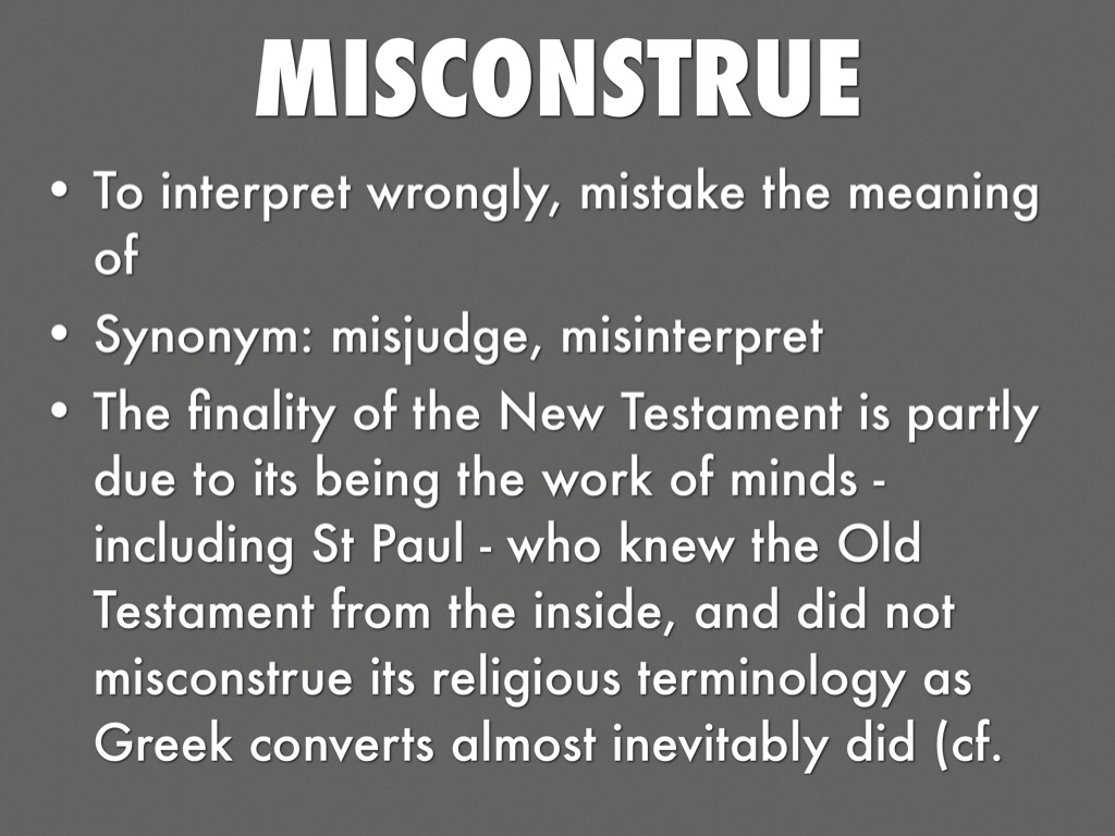 The finality of the New Testament is partly due to its being the work of minds - including St Paul - who knew the Old Testament from the inside, and did not misconstrue its religious terminology as Greek converts almost inevitably did (cf.