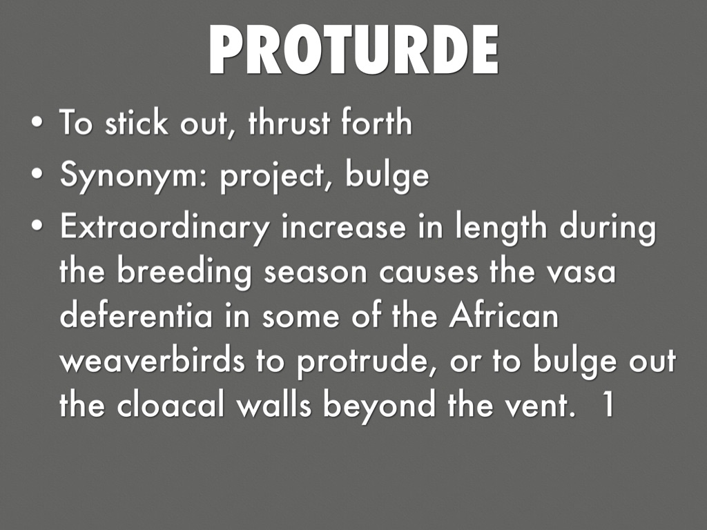 Extraordinary increase in length during the breeding season causes the vasa deferentia in some of the African weaverbirds to protrude, or to bulge out the cloacal walls beyond the vent. 1