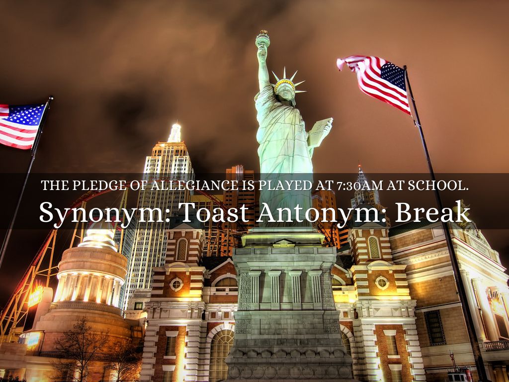THE PLEDGE OF ALLEGIANCE IS PLAYED AT 7:30AM AT SCHOOL.