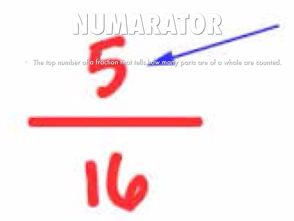The top number of a fraction that tells how many parts are of a whole are counted.