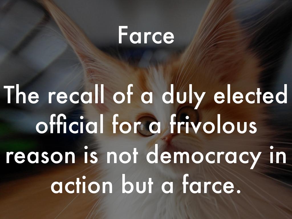 The recall of a duly elected official for a frivolous reason is not democracy in action but a farce.