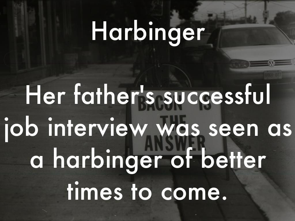 Her father's successful job interview was seen as a harbinger of better times to come.