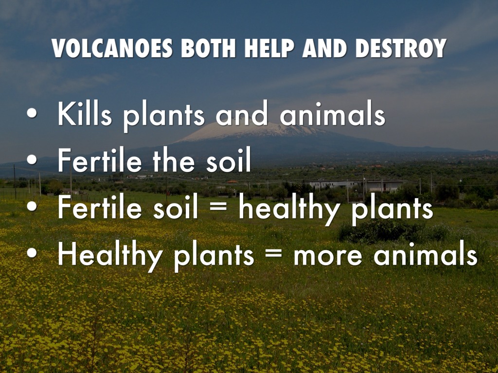 VOLCANOES MAKE THE SOIL MORE FERTILE FOR PLANTS.