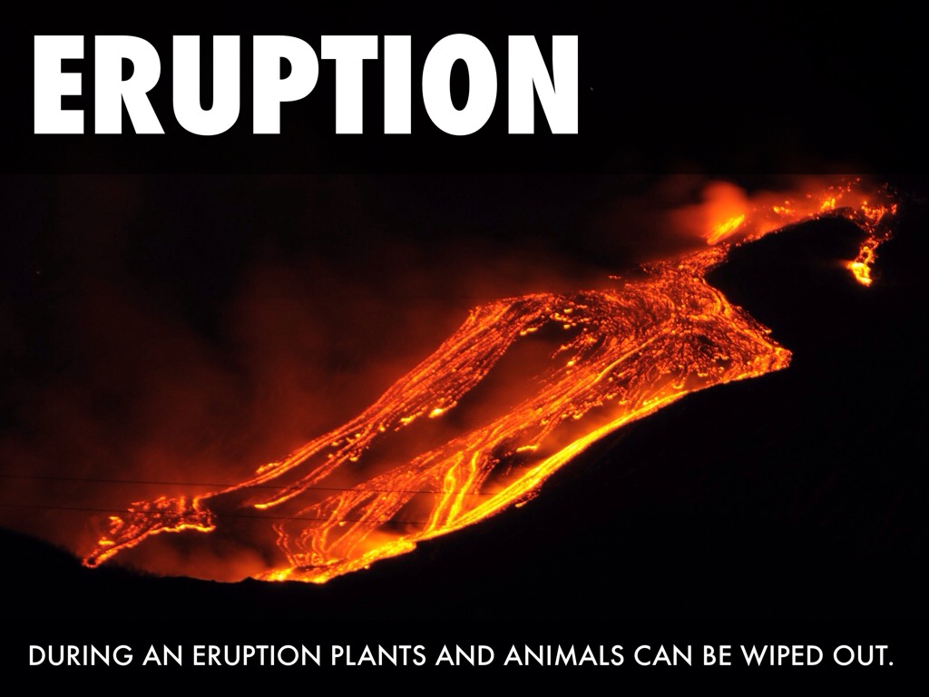 DURING AN ERUPTION PLANTS AND ANIMALS CAN BE WIPED OUT.