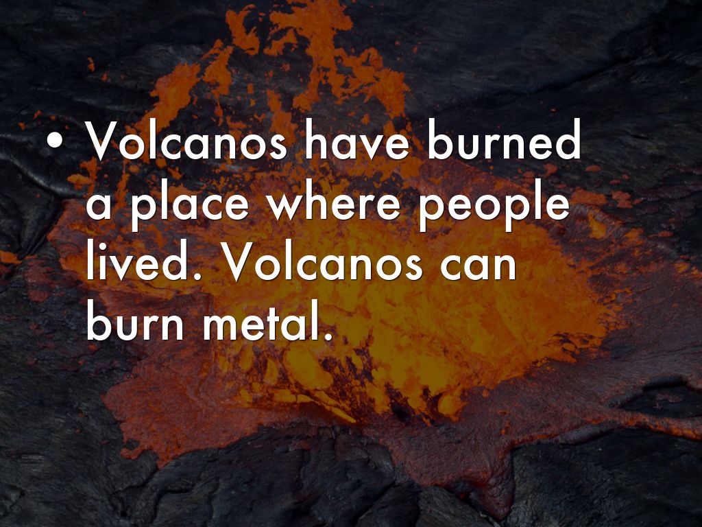 Volcanos have burned a place where people lived. Volcanos can burn metal.