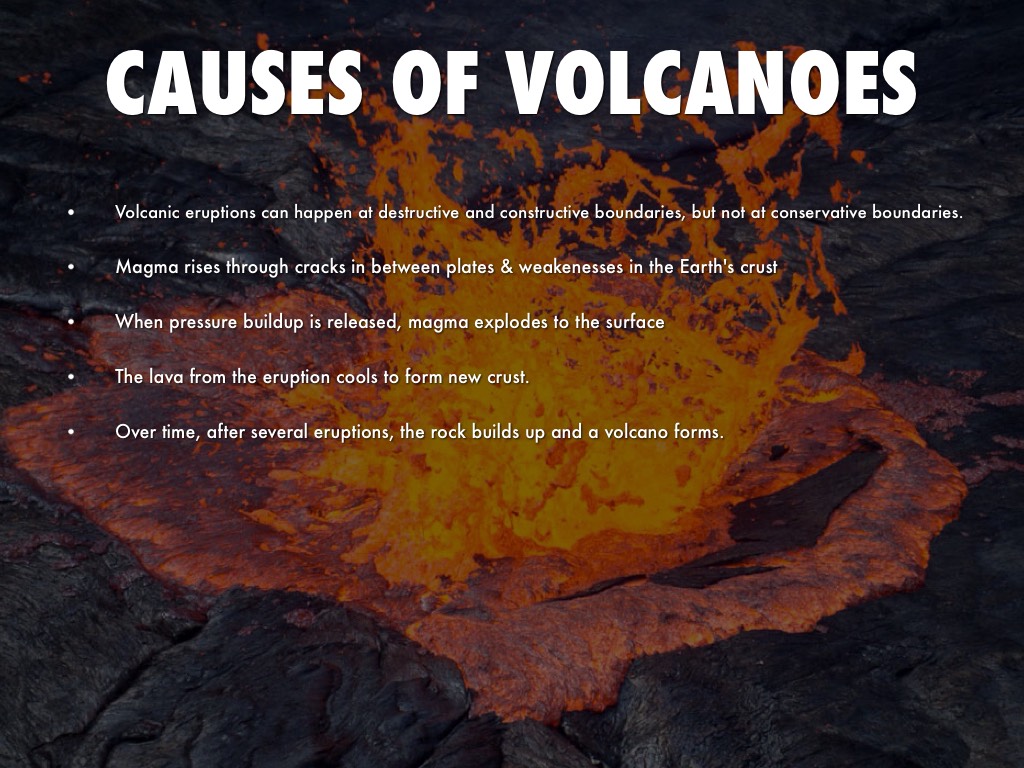 Volcanic eruptions can happen at destructive and constructive boundaries, but not at conservative boundaries.