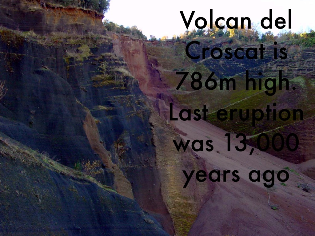 Volcan del Croscat is 786m high. Last eruption was 13,000 years ago