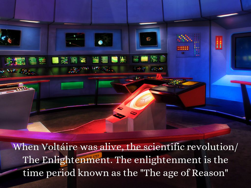 When Voltáire was alive, the scientific revolution/ The Enlightenment. The enlightenment is the time period known as the "The age of Reason"