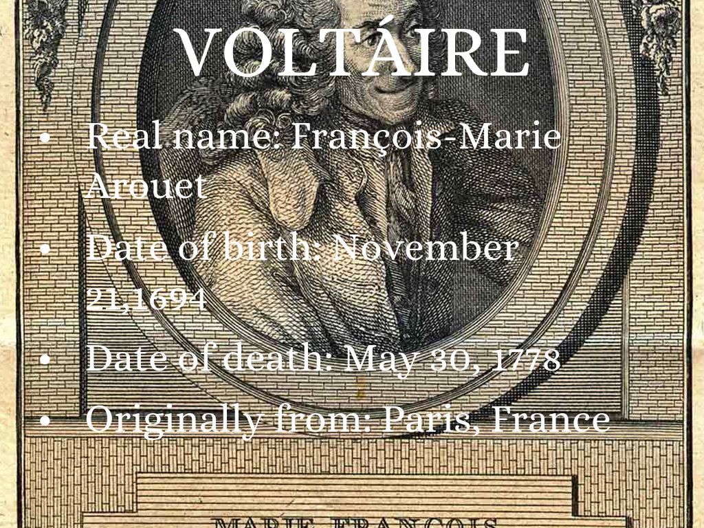 Voltaire | Biography - French Philosopher and Author." Encyclopedia Britannica Online. Encyclopedia Britannica, n.d. Web. 28 Sept. 2015.