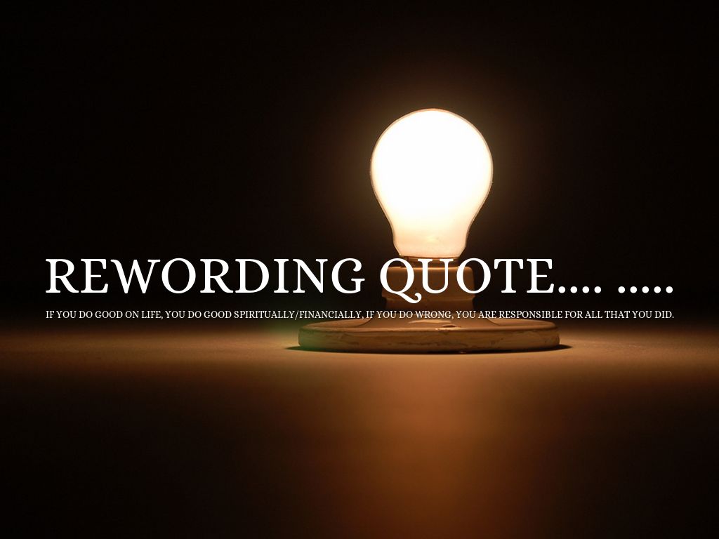 If you do good on life, you do good spiritually/financially, if you do wrong, you are responsible for all that you did.