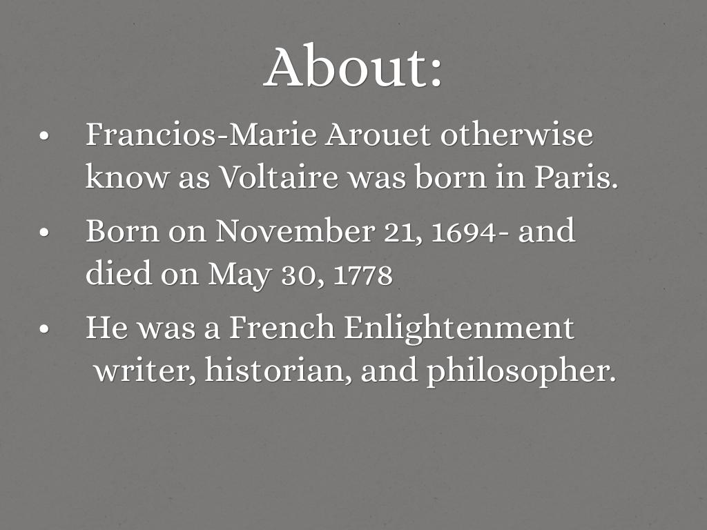 Francios-Marie Arouet otherwise know as Voltaire was born in Paris.