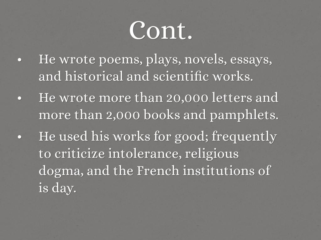 He used his works for good; frequently to criticize intolerance, religious dogma, and the French institutions of is day.