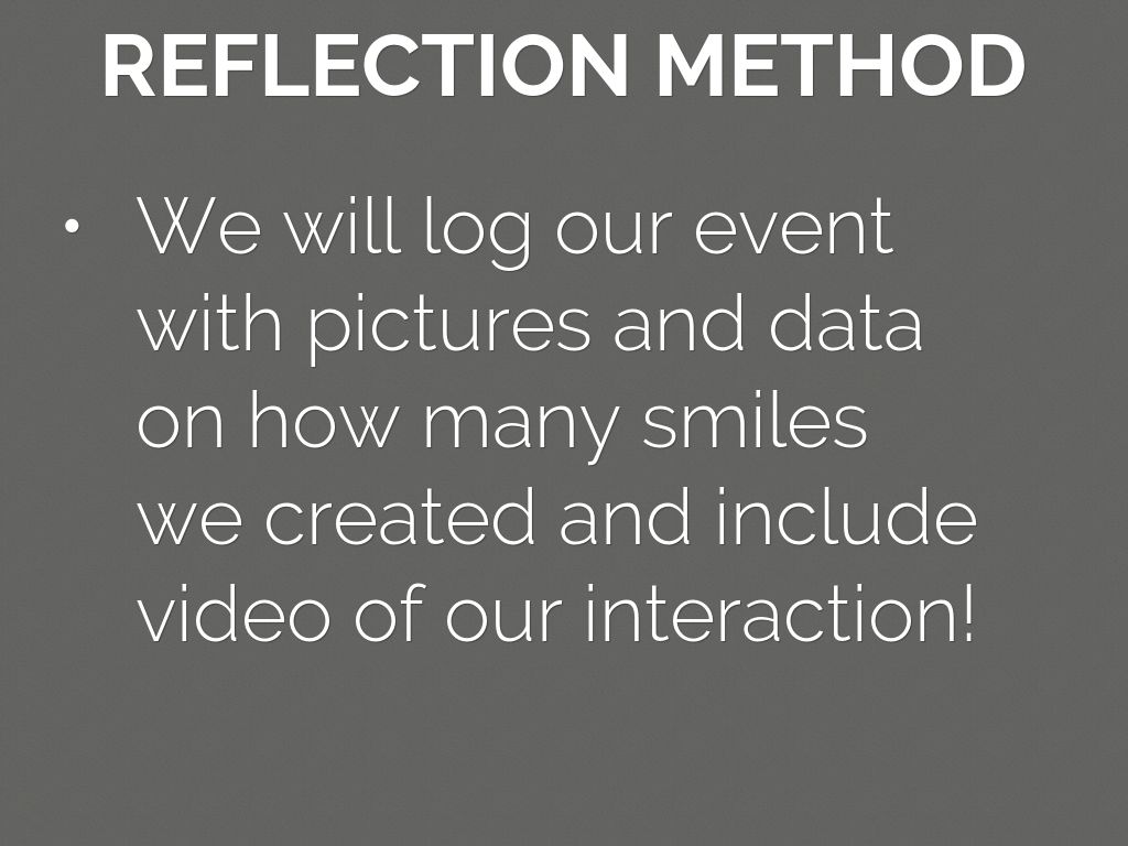 We will log our event with pictures and data on how many smiles we created and include video of our interaction!
