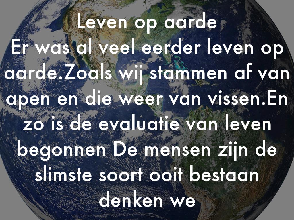 Er was al veel eerder leven op aarde.Zoals wij stammen af van apen en die weer van vissen.En zo is de evaluatie van leven begonnen De mensen zijn de slimste soort ooit bestaan denken we