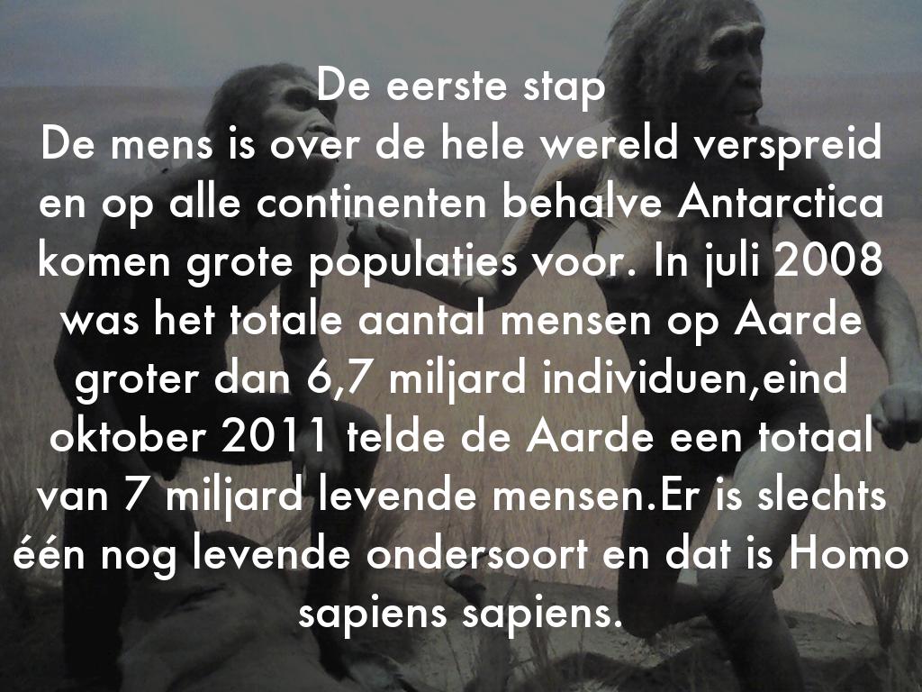 De mens is over de hele wereld verspreid en op alle continenten behalve Antarctica komen grote populaties voor. In juli 2008 was het totale aantal mensen op Aarde groter dan 6,7 miljard individuen,eind oktober 2011 telde de Aarde een totaal van 7 miljard levende mensen.Er is slechts één nog levende ondersoort en dat is Homo sapiens sapiens.