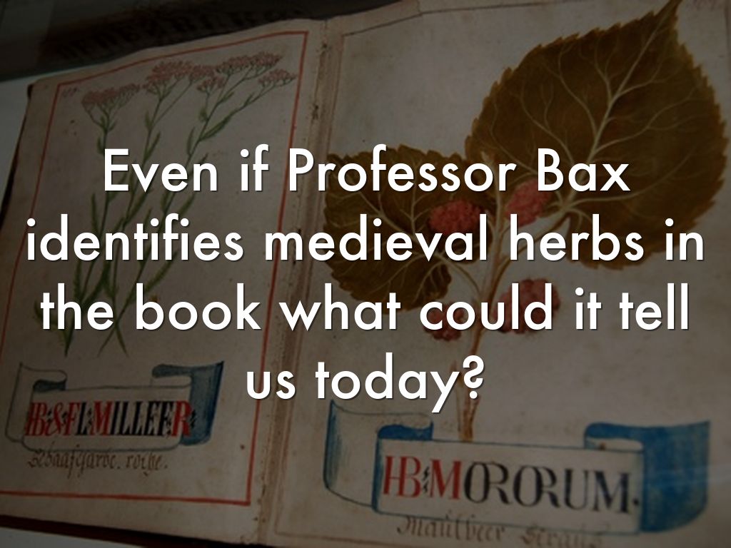 Even if Professor Bax identifies medieval herbs in the book what could it tell us today?
