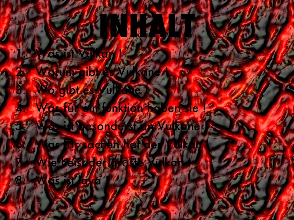 • Ein Vulkan ist eine geologische Struktur, die entsteht, wenn Magma (Gesteinsschmelze) bis an die Oberfläche eines Planeten (z. B. der Erde) aufsteigt.