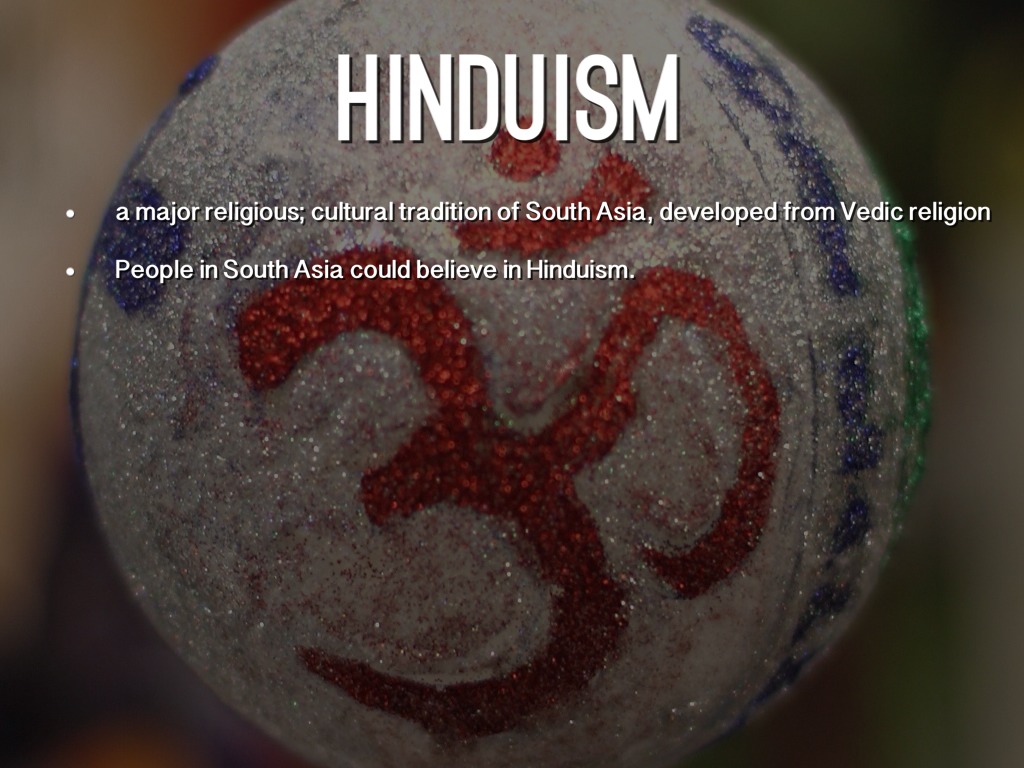 a major religious; cultural tradition of South Asia, developed from Vedic religion