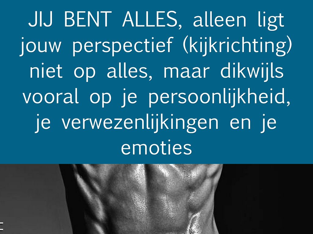 JIJ BENT ALLES, alleen ligt jouw perspectief (kijkrichting) niet op alles, maar dikwijls vooral op je persoonlijkheid, je verwezenlijkingen en je emoties