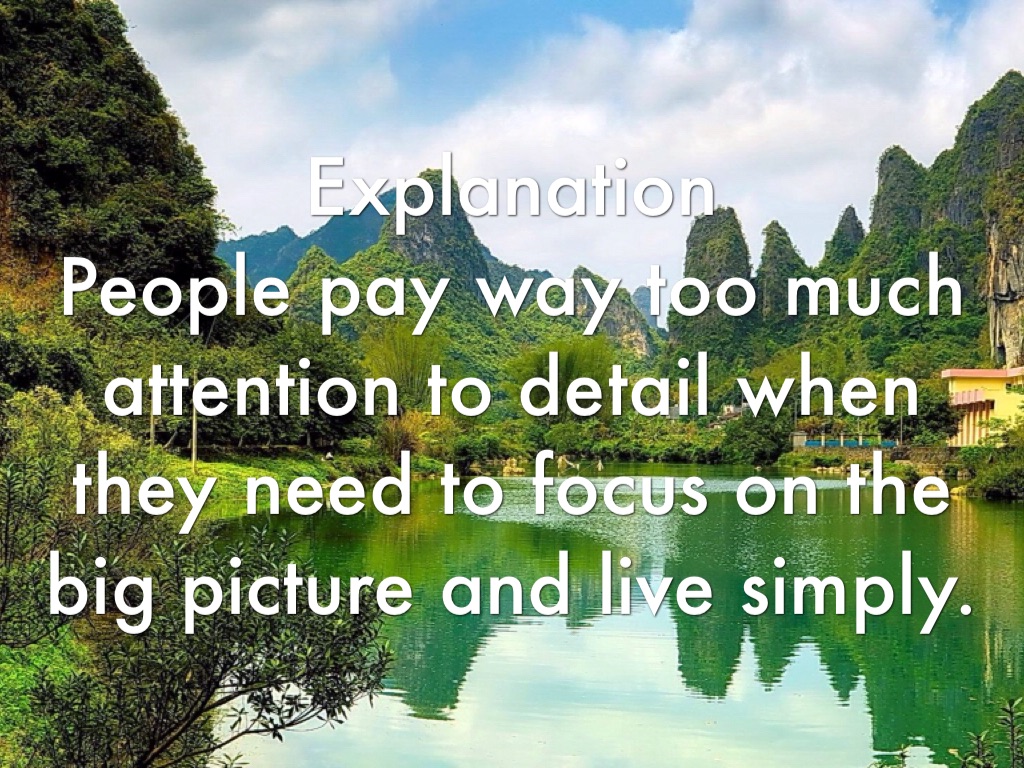 People pay way too much attention to detail when they need to focus on the big picture and live simply.