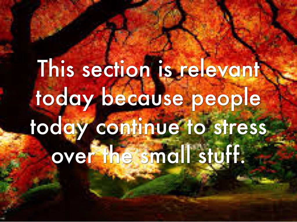 This section is relevant today because people today continue to stress over the small stuff.