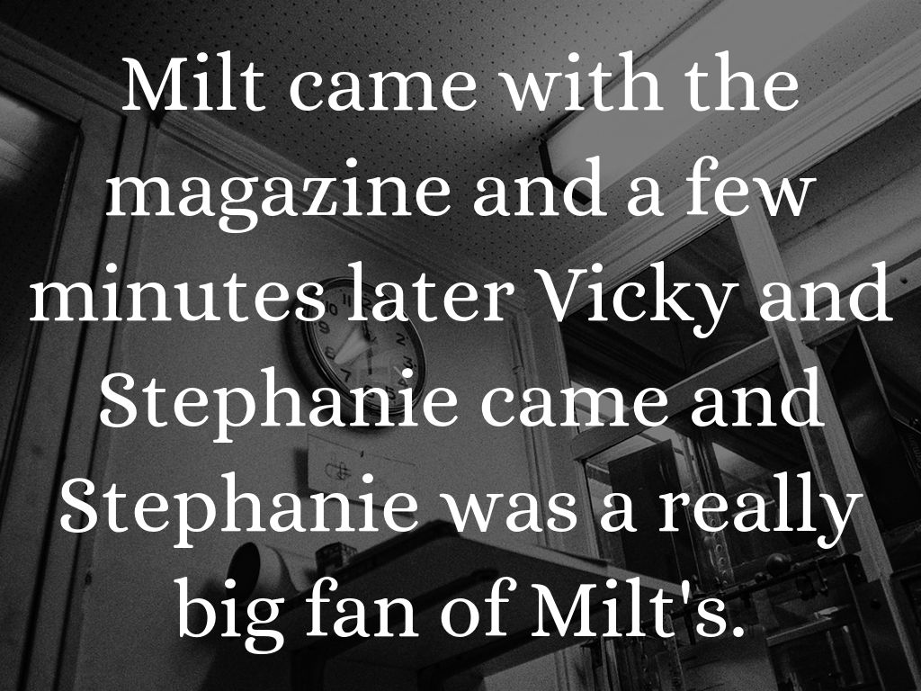 Milt came with the magazine and a few minutes later Vicky and Stephanie came and Stephanie was a really big fan of Milt's.