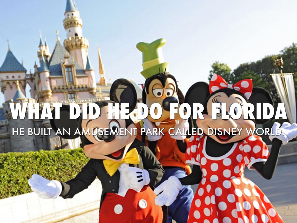 HE BUILT AN AMUSEMENT PARK CALLED DISNEY WORLD.